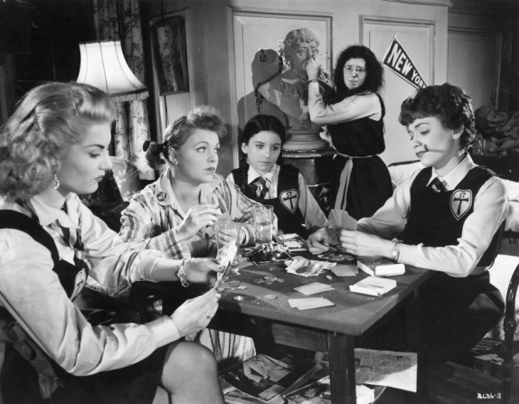 Originally appearing in the British humorous arts magazine Lilliput during the 1940s, Searle’s boisterous and anarchical schoolgirls were an instant hit. They embodied a sense of mischievous fun and disregard for authority which simmers deep within most of us during our school years, whether we’d admit it or not. It was only a matter of time before the characters found their way to the big screen, and the film’s screenplay by Frank Launder, Sidney Gilliat and Val Valentine, along with Joseph Bato’s art direction, captured perfectly the subversive wit of Searle’s original cartoon drawings.