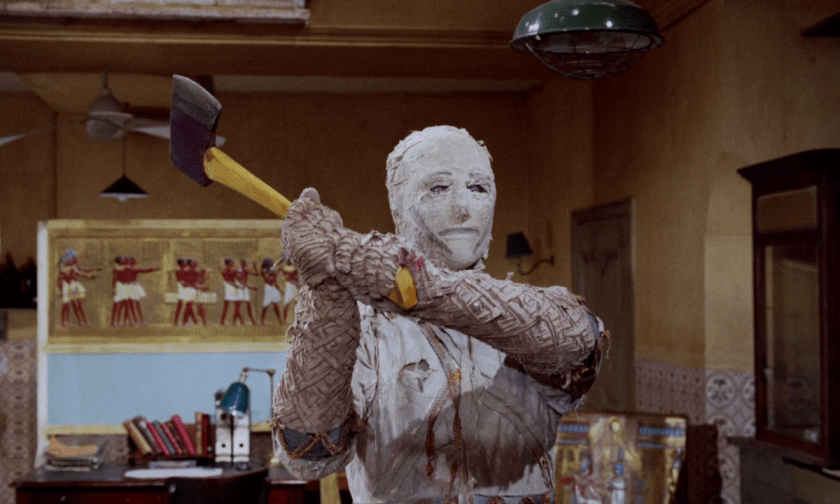 Being honest The Mummy’s Shroud is cheesy in every way imaginable. One-dimensional sets, garish gore – the lashings of blood in particular have an overtly fake appearance – and a basic plot, make the production memorable for all the wrong reasons. Despite having Hammer stalwarts like John Gilling directing, Anthony Hinds writing the story (with Gilling) and Bernard Robinson behind the production designer, the film as a whole lacks the style and sharpness of the studio’s earlier productions. Hammer regulars André Morell and Michael Ripper (for once given more than a mere walk on role) do an admirable job as members of the ill-fated expedition whilst Maggie Kimberly more than competently fulfils her role as the required damsel in distress. However the absence of Peter Cushing or Christopher Lee, whose appearance would probably have given the film a saving gravitas but whose presence in Hammer’s films were becoming less frequent by the late 60s, is glaringly obvious.